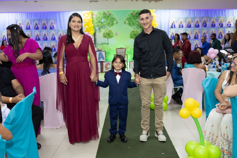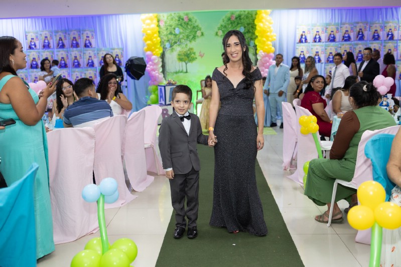 Os pequenos formandos, com suas becas e sorrisos radiantes, marcaram o encerramento de uma importante etapa educacional, enquanto seus pais, emocionados, comemoraram essa conquista que simboliza o início de um futuro promissor.