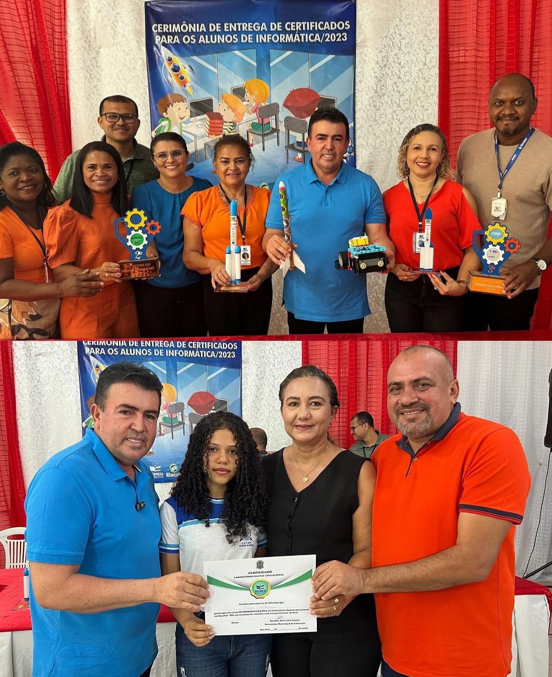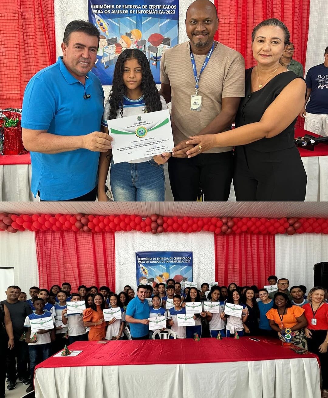 Hoje, (14/12) no auditório da Secretaria Municipal de Educação (SEMED), foi realizada uma solene cerimônia de entrega de certificados aos estudantes da rede municipal que concluíram o curso de informática. O evento também celebrou os alunos que se destacaram como campeões nacionais em competições de robótica e foguetes.