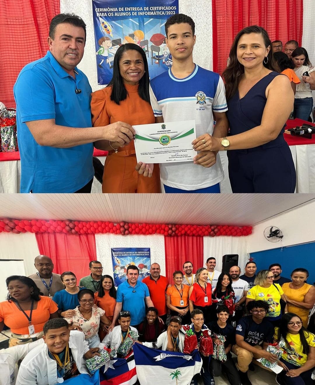 Edvan Brandão compartilhou sua satisfação, afirmando: “Seguimos celebrando conquistas! Hoje entregamos os certificados aos alunos de informática e prestamos homenagem aos campeões nacionais de foguete e robótica. Continuamos investindo e acreditando no potencial transformador da nossa educação.”