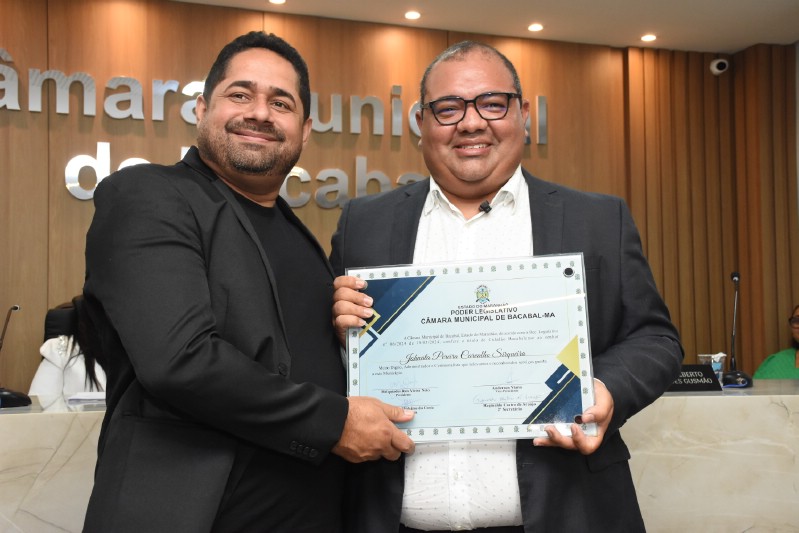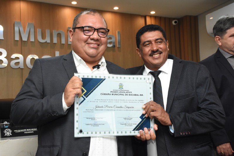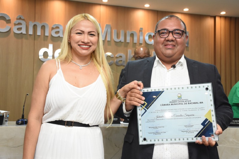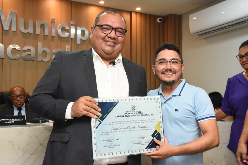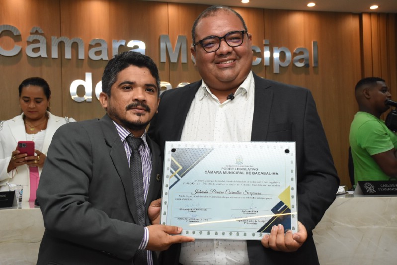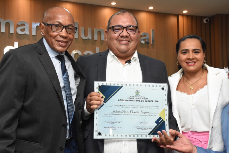 Em sessão solene realizada na quarta-feira, 6 de novembro, a Câmara Municipal de Bacabal homenageou o administrador e cerimonialista Johnata Pereira Carvalho Sirqueira, popularmente conhecido como “Bola”, com o Título de Cidadão Bacabalense. A honraria, instituída pelo Projeto de Decreto Legislativo Nº 06/2024, de autoria do vereador Alberto Sobrinho, reconhece os serviços prestados por Johnata à comunidade de Bacabal, valorizando sua trajetória profissional e dedicação à cidade.