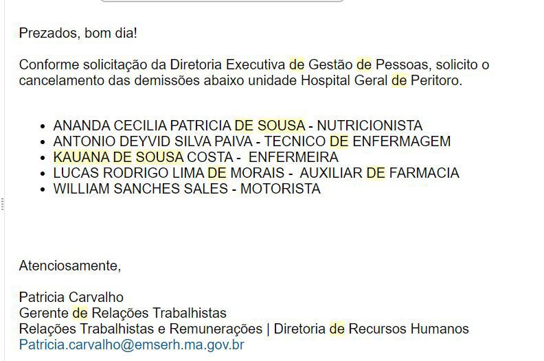O governador Carlos Brandão, após tomar conhecimento sobre a demissão de funcionários do Hospital Geral de Peritoró, fato ocorrido alguns dias atrás, determinou o retorno imediato dos funcionários a unidade de saúde.
