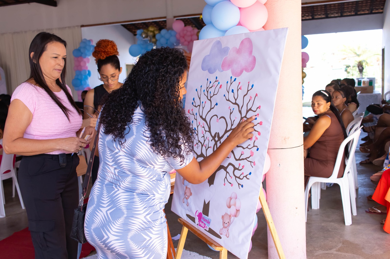 Durante a programação, as gestantes foram recebidas com um café da manhã especial e um ambiente cuidadosamente ornamentado. A ação contou ainda com atividades de belly painting, palestras com profissionais da saúde e um clima de amor e fraternidade.