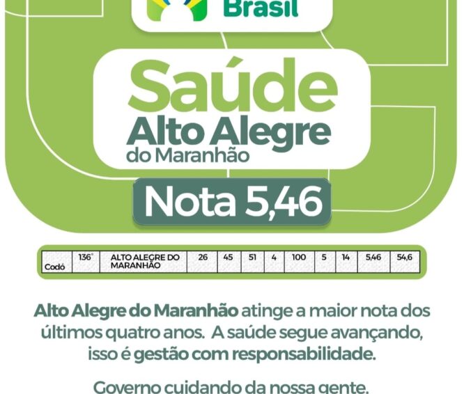 Alto Alegre do Maranhão atinge a maior nota dos últimos quatro anos. A saúde segue avançando isso é gestão com responsabilidade