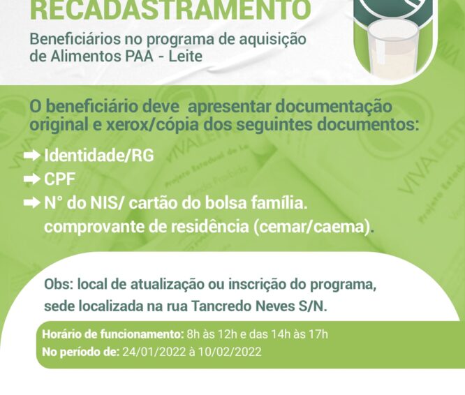 PREFEITURA DE ALTO ALEGRE DO MARANHÃO / CADASTRAMENTO PARA OS BENEFICIARIO DO PROGRAMA DE AQUISIÇÃO DE ALIMENTOS PAA
