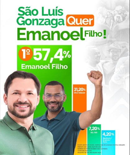 Pesquisa do Instituto Exata Aponta Liderança de Emanoel Filho nas Intenções de Voto em São Luís Gonzaga-MA