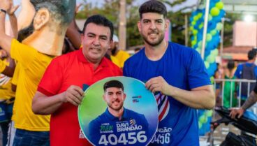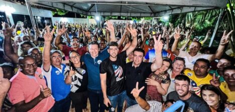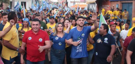 Uma multidão de pessoas acompanham Davi Brandão pelas ruas de Bacabal o evento marcou a inauguração do comitê oficial de campanha