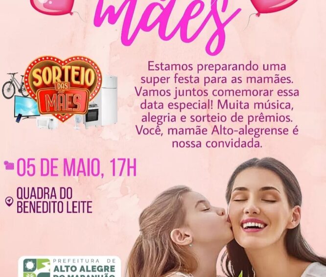 Prefeitura de Alto Alegre do Maranhão realizará dia 05 grande festa para mães alto-alegrensess