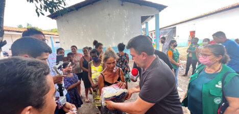 Em visita as famílias desabrigadas pela enchente do Rio Mearim, prefeito Edvan Brandão faz distribuição de alimentos.