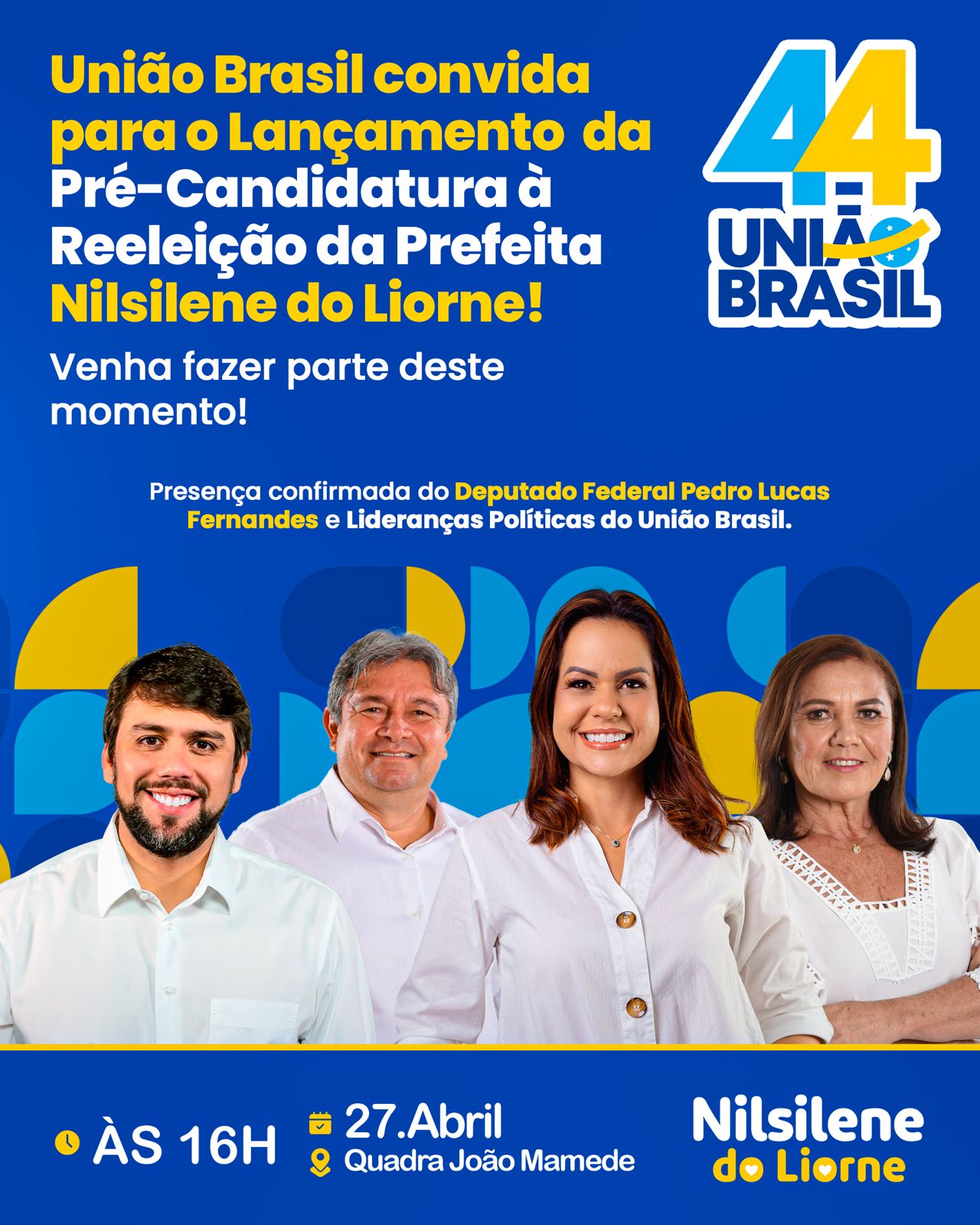 Nilsilene, que é filiada ao partido União Brasil 44, convida a população a se juntar a ela neste importante momento político. O evento contará com a presença confirmada do deputado federal Pedro Lucas Fernandes, além de diversas lideranças políticas, incluindo o líder político Dr. Liorne Branco, vereadores e apoiadores.