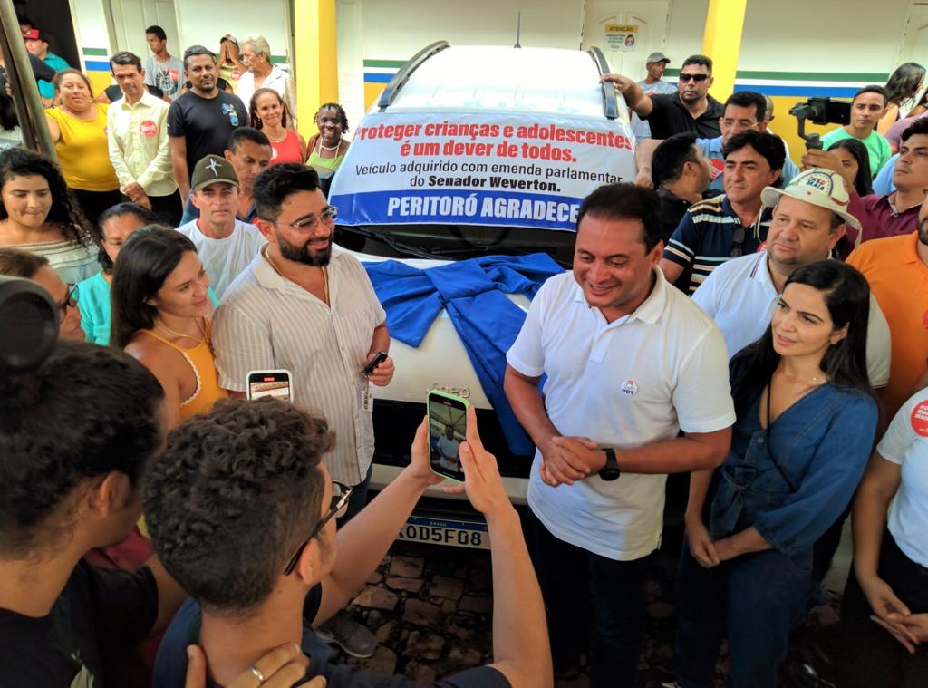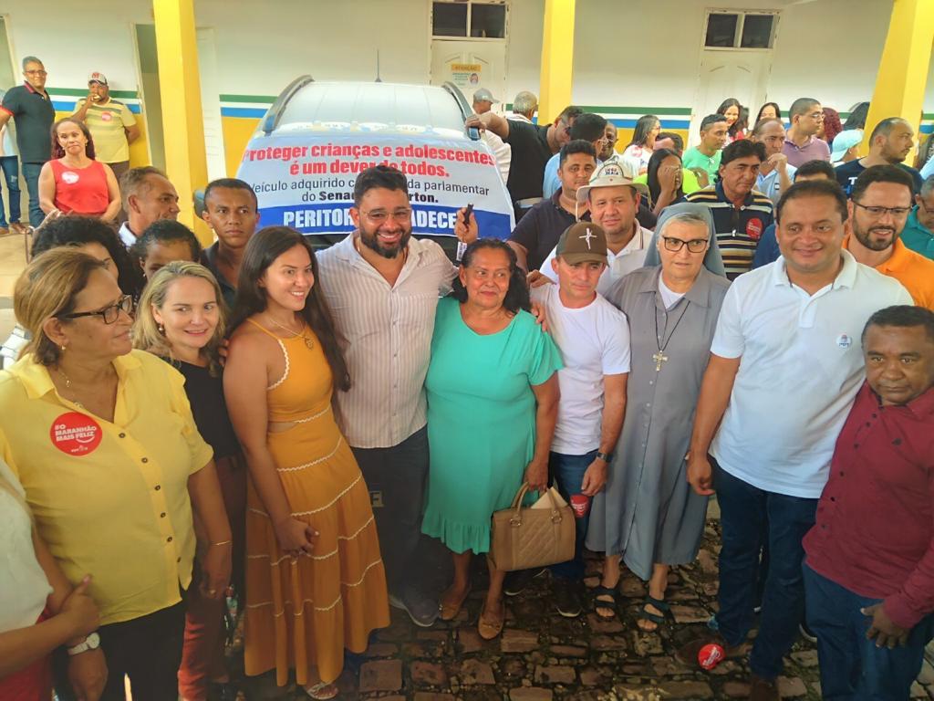No último sábado (19), o prefeito de Peritoró, Dr. Júnior e o senador Weverton Rocha, ao lado da primeira-dama, Dra. Samira Raquel, secretários de governo e vereadores, realizaram a entrega oficial de um veículo 0 km e um kit de equipamentos para a sede do Conselho Tutelar de Peritoró, conseguido por meio de emenda parlamentar do senador Weverton Rocha.
