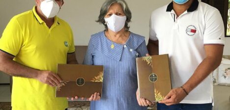PREFEITO EDVÃON BRANDÃO E O DEP. ROBERTO COSTA RECEBEM LEMBRANÇA DAS MÃOS DE DONA TAUGI LAGO