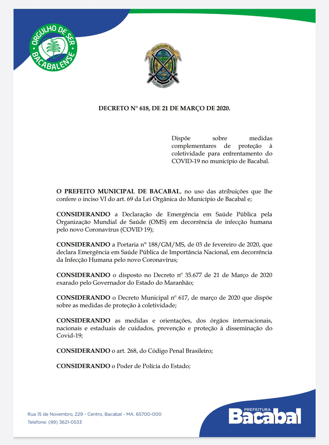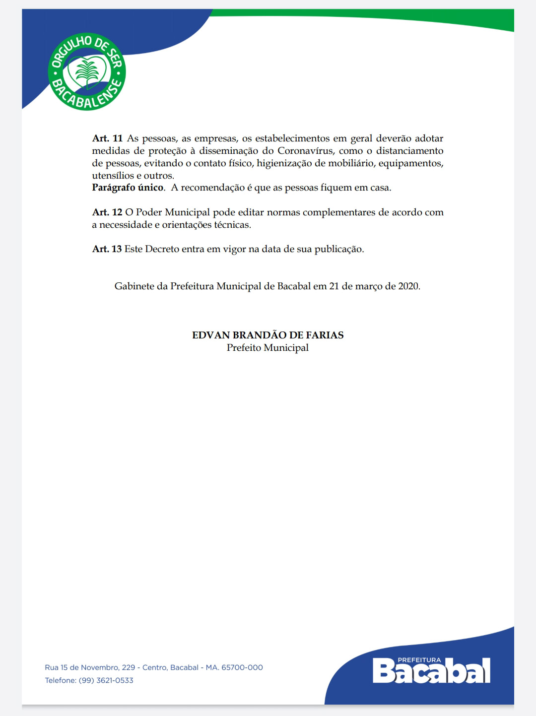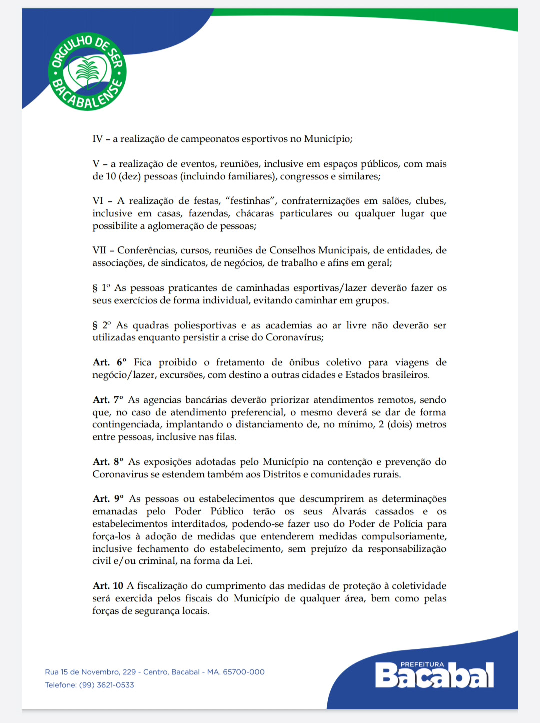 Novo Decreto da Prefeitura de Bacabal…