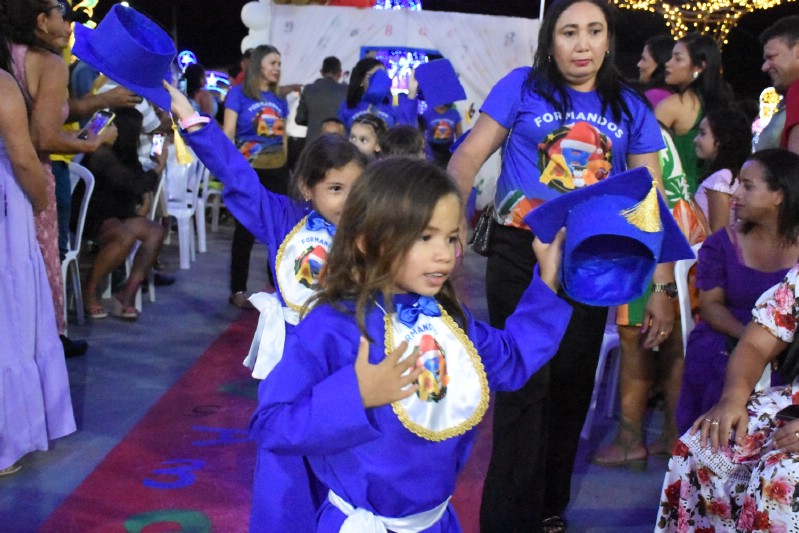A noite da última quinta-feira (7) foi marcada por momentos de emoção, festividade e reconhecimento na terceira formatura consecutiva dos “Doutores do ABC” promovida pela Prefeitura de Bom Lugar, por meio da Secretaria de Educação. O evento, que contou com a participação de pais, alunos, autoridades e a comunidade em geral. A cerimônia reuniu os formandos das escolas da rede municipal de ensino, tanto na sede quanto na zona rural. A noite foi dedicada à celebração da alfabetização, marcando a conquista desses jovens estudantes ao subirem o primeiro degrau em suas trajetórias escolares.