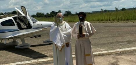 DOM ARMANDO E PADRE LAURO SOBREVOARAM A CIDADE DE BACABAL COM O SANTÍSSIMO E A IMAGEM DE SANTA TEREZINHA PADROEIRA DE BACABAL