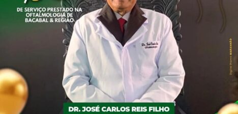 MÉDICO OFTALMOLOGISTA DR. JOSÉ CARLOS REIS FILHO, COMPLETA 40 ANOS DE PROFISSÃO EM BACABAL
