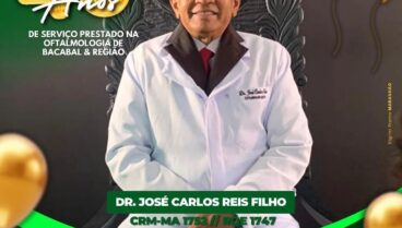 MÉDICO OFTALMOLOGISTA DR. JOSÉ CARLOS REIS FILHO, COMPLETA 40 ANOS DE PROFISSÃO EM BACABAL