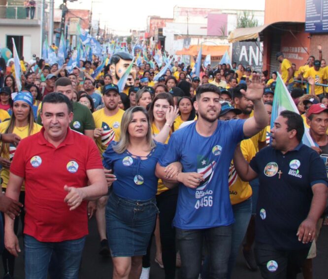 Uma multidão de pessoas acompanham Davi Brandão pelas ruas de Bacabal o evento marcou a inauguração do comitê oficial de campanha