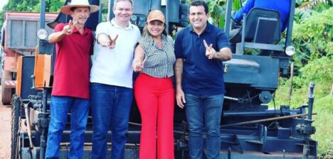 A prefeita Marlene Miranda acompanhada do líder político Marcos Miranda e o Dep Rafael , vereadores e secretários municipais, vistoriaram a obra de asfaltamento do povoado Vertente.